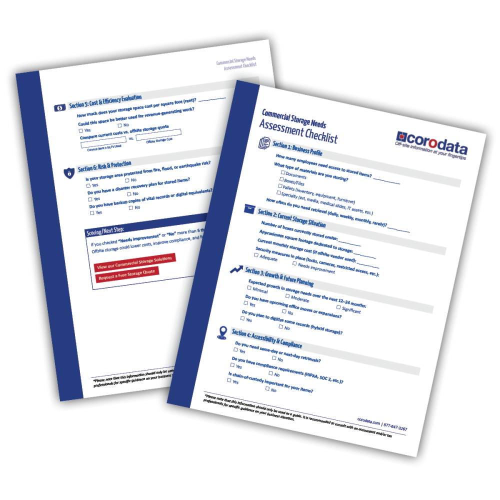 If your records storage strategy is costing you time and money, our Commercial Storage Needs Assessment Checklist will help you evaluate your current practices and identify areas for improvement.